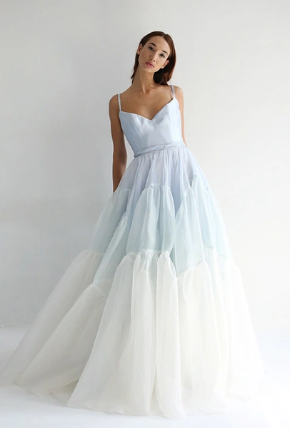 Раз уж нарушать правила, то идти в этом увлекательном деле до конца. Свадебному платью теперь не обязательно быть не только длинным, но и белоснежным. За цвет в новом сезоне выступает один из главных трендсеттеров bridal Вера Вонг. Платья из ее новой коллекции - с пышными, двух- и трех-цветными подолами, украшены крупными бантами и яркими розами. «Классика» кажется на их фоне тривиальной. У Tempereley London в коллекции есть платье с ярким растительным принтом, которое подойдет любителям этники, а британский дизайнер София Толли добавляет драмы, украшая белые наряды контрастной черной вышивкой. Если к яркому вы не готовы, но поэкспереминтировать все-таки хочется, выбирайте нежно-голубые наряды от Inbal Dror или Leanne Marshall.