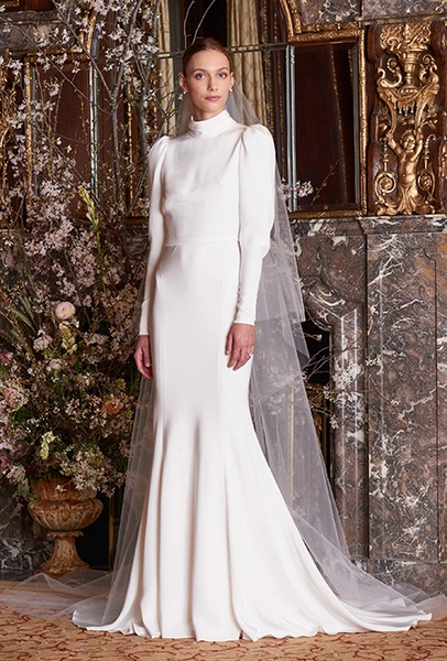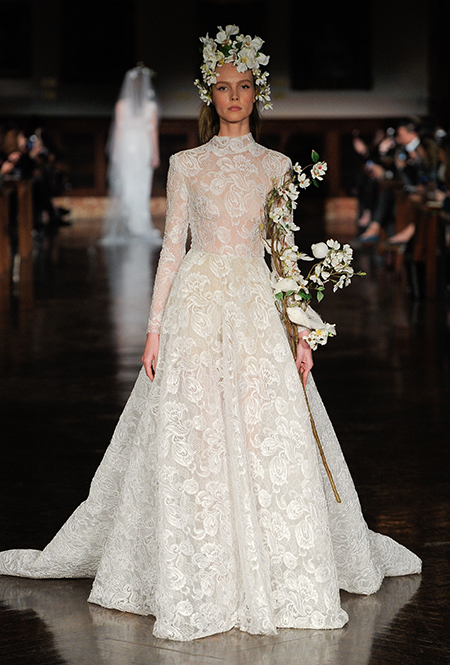 Платья с наглухо закрытым воротом напоминают о невестах из XIX столетия. Правда, по настоящему целомудренно такая модель выглядит лишь у Monique Lhuillier – такую, пожалуй, одобрила бы сама королева Виктория. У других дизайнеров «викториана» скромна обманчиво. Reem Acra шьет «глухой» лиф из полупрозрачной ткани, Alessandra Rinaudo поступает так же, при этом еще и украшает платье невероятно эффектной цветочной вышивкой.