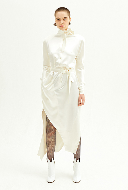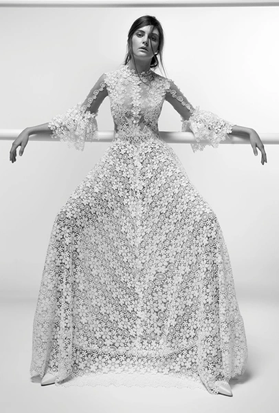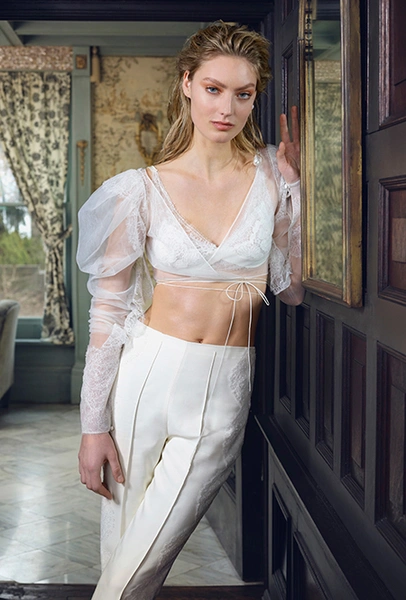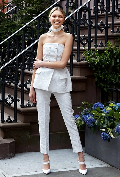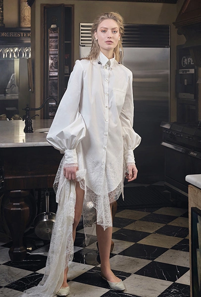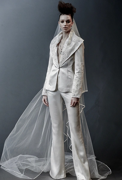 Свадебная мода, как уже говорилось выше, становится все демократичнее. Пионер и флагман нетривиального bridal – Вивьен Вествуд. Она шила «панковские» платья для невест еще до того, как это стало круто. В новом сезоне муж Вивьен и по совместительству креативный директор ее бренда Андреас Кронтхалер предлагает накидки, похожие на хиджаб, вместо фаты и шелковые платья-миди с ассиметричным подолом вместо «принцессиных» нарядов. Наим Хан идет еще дальше и предлагает отправиться к алтарю в спортивном костюме, а Даниэлль Фрэнкель, кроме уже упомянутой рубашки, создала свадебную пару – брюки плюс ультракороткий топ с рукавами-«фонариками».