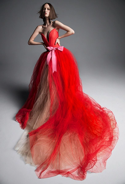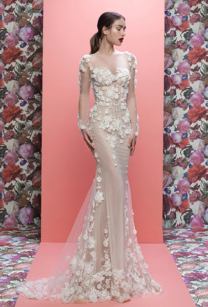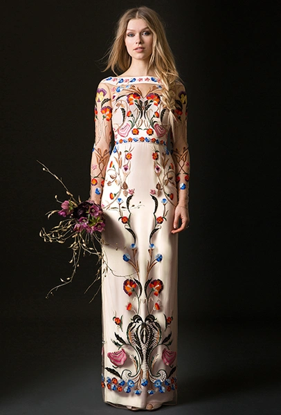 Вышивка – практически неотъемлемый элемент классического свадебного наряда. Но современные дизайнеры часто идут дальше и украшают платья крупными цветами, что называется, «с эффектом 3D». Особенно в этом преуспели Viktor & Rolf. Их аппликации вышиты так четко, что кажутся вырезанными из бумаги. Очень красивы и плотные бутоны, «рассыпанные» по подолу из тюля, у Elie Saab и Lela Rose.