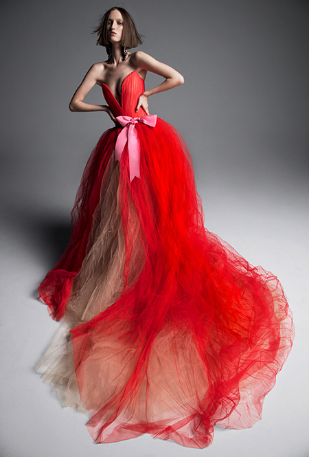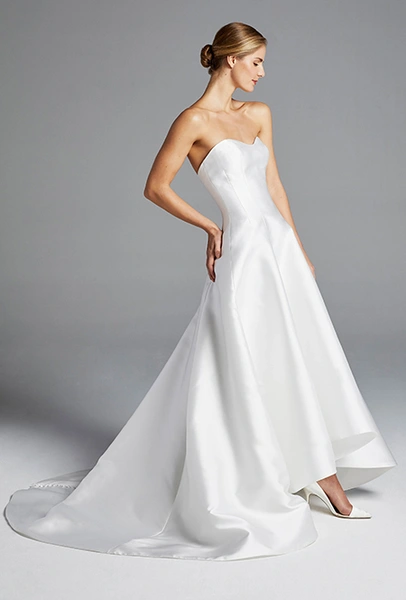 Для тех, кому и вышивка и аппликации кажутся излишествами, отвлекающими от главного, есть другой невероятно мощный тренд. Четко скроенные, невероятно элегантные платья, без намека на принт или отделку. Хотя бы одно минималистичное платье есть в новом сезоне едва ли не в каждой коллекции. У Marchesa – с эффектным пышным подолом; у Tadashi Shodji – с сексуальными вырезами по бокам; а у Anne Barge – со шлейфом.