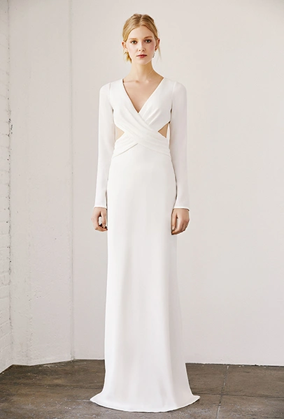 Идеальный компромисс между удобством и «нарядностью». Если вам совсем не хочется весь вечер думать о том, как бы не запутаться в собственном подоле, но ваша бабушка считает, что выйдя замуж в брюках (про комбинезон ей даже не говорите!) вы опозорите семью, остановитесь на платьях до колена и чуть выше. Выберите пышное, в стиле 60-х, от Viktor & Rolf или прямое и очень элегантное от Laure de Sagazan. У Tadashi Shoji короткие платья обтягивающие и с обнаженными плечами. Кто сказал, что невеста не может выглядеть сексуально?