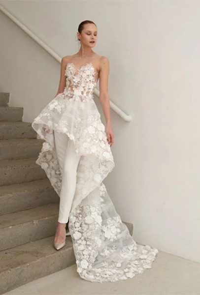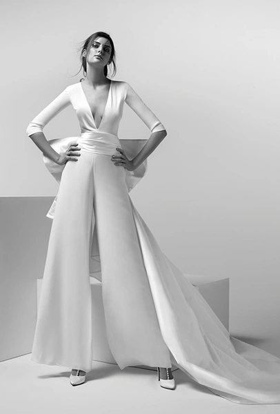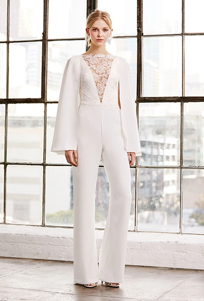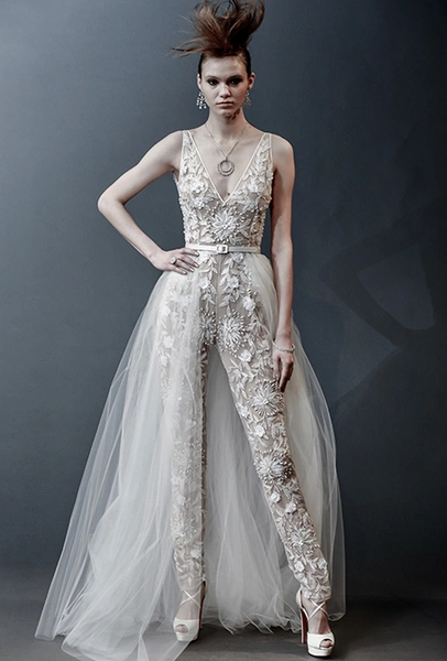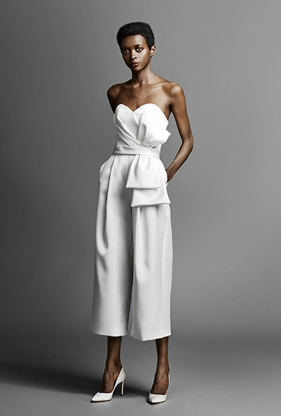 Тренд близкий предыдущему, но еще более молодой. Подходит тем, кто ратует за свадебный минимализм. В комбинезонах от Viktor & Rolf или Lakum нет практически ничего лишнего, зато есть безупречный крой и идеально гладкая ткань. Если все-таки любите кружева и вышивку, выбирайте Tadashi Shoji и Naeem Khan.