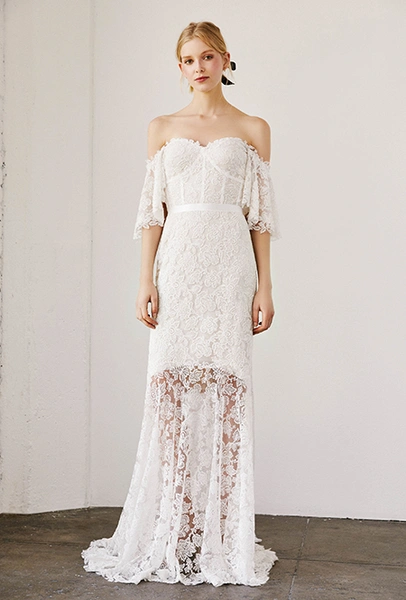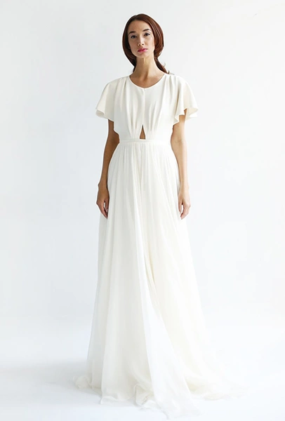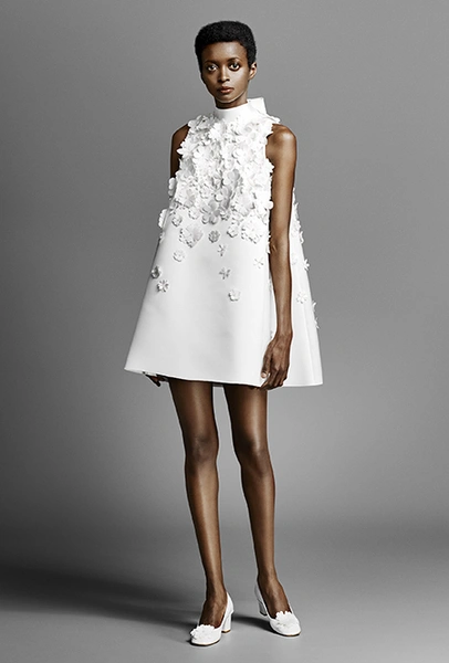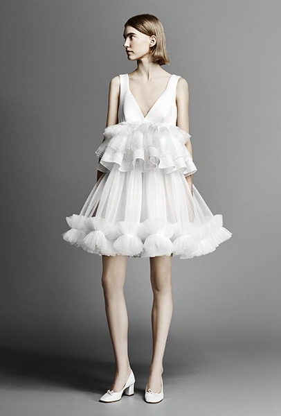 На страже свадебного минимализма – японец Тадаши Шоджи. Долгое время он шил исключительно платья для красных дорожек, заслужил любовь звезд первого эшелона, вроде Хелен Миррен, Кэти Перри, Миранды Керр и Мишель Обамы, а год назад запустил линейку относительно недорогих платьев для невест (самый бюджетный наряд стоит $400). Если прошлая, дебютная, коллекция была выдержана во вполне традиционном для свадебной моды стиле – с обилием вышивки и аппликаций – то нынешняя куда более лаконична: Шоджи отказался от избыточной отделки и начал экспериментировать с длиной мини.