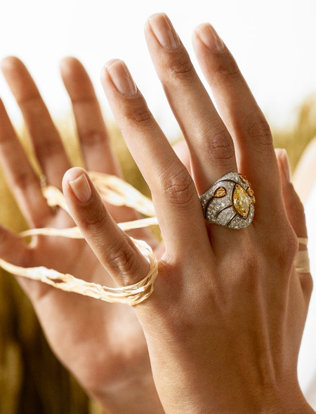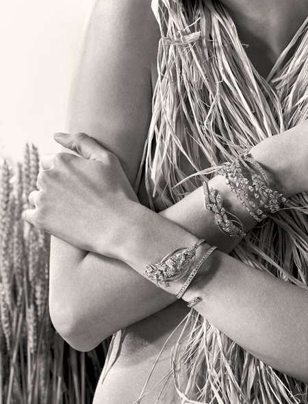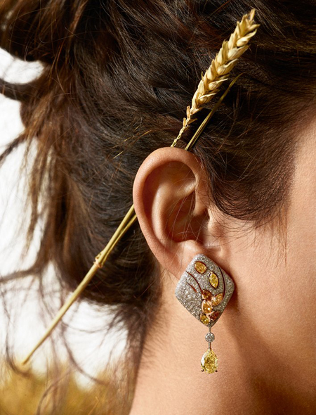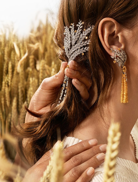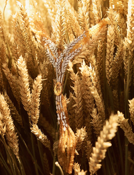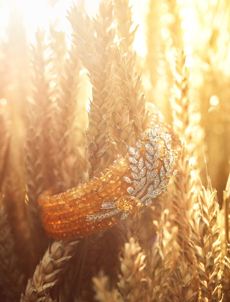 Особое место в этой линейке украшений занимают драгоценные камни желтого цвета, символизирующие жар полуденного солнца, например центральный желтый бриллиант в 25 карат в ожерелье Fête des Moissons. В центре колье Moisson d’Or – желтый сапфир в 16,8 карата в окружении бриллиантов и 977 сапфиров.