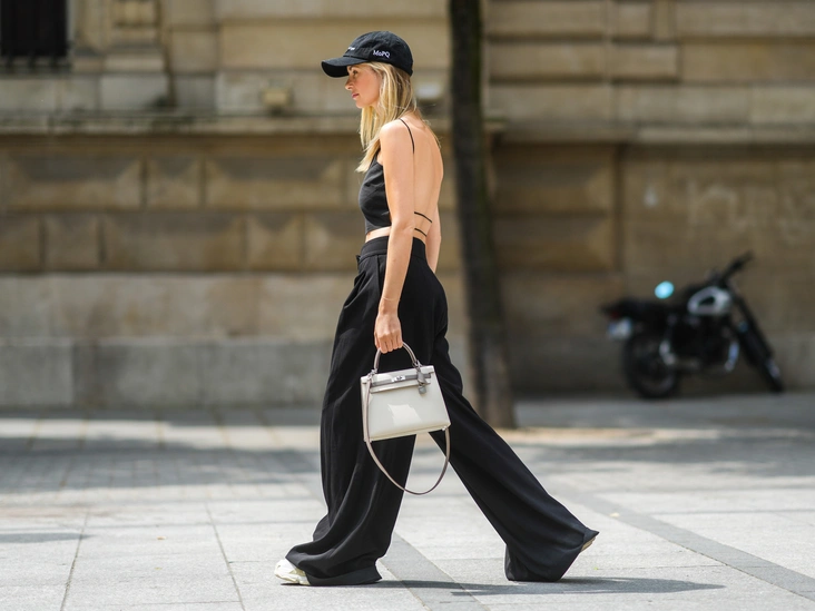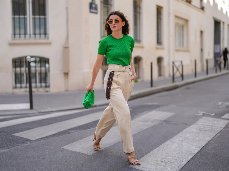 Универсальные и очень удобные брюки-бананы — на пике популярности уже несколько десятилетий подряд, и это вполне объяснимо: они не сковывают движений, скрывают или, напротив, добавляют объем там, где нужно, а также создают женственный силуэт. «Бананы» — брюки с завышенной талией и складками на поясе, поэтому верх под них целесообразнее подбирать не длинный и облегающий. Что касается обуви, в отличии от кюлот, спортивный стиль недопустим: лучше выбрать туфли на шпильке или же мюли/босоножки на сплошной подошве (читайте также: Самые модные босоножки и сандалии лета 2021).