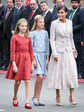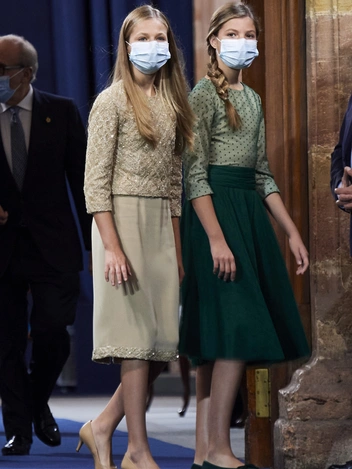 15-летняя принцесса Леонор и 13-летняя принцесса София такие же изящные и сдержанные, как их мама, королева Летиция. Говорят, сестры нередко занимают одежду друг у друга. Как правило, принцессы появляются на публике в одежде броских оттенков, но крой предпочитают довольно лаконичный. Как и Летиция, ее дочери с удовольствием совершают покупки в местном масс-маркете вроде Zara, Mango и Stradivarius. Ну а школьная форма у Леонор и Софии как у всех испанок.
