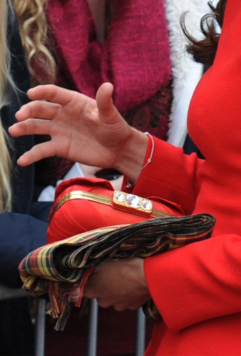 Броские и акцентные символы смерти — долой. Такой детали, например, лишился один из самых любимых аксессуаров герцогини — алый минодьер, украшенный бантами, изначально имел застежку в виде черепа. Специально для королевской особы такая вызывающая деталь была заменена на сдержанный и классический фермуар в виде камня.
