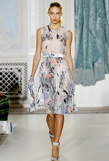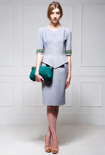 Футуристичные наряды, которые дизайнер продемонстрировала на показе весна-лето 2012 года, и вовсе имеют мало общего с персиковым платьем, выбранном герцогиней для крестин принца Джорджа. От первоначального дизайна остались мягкие асимметричные оборки и длина рукава. А приталенная юбка была заменена на более привычный для герцогини А-силуэт.