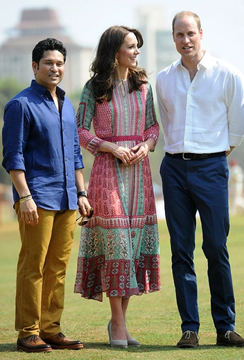 В этом же туре стилистический апрейд настиг и другой наряд — платье в этно-стиле от Anita Dongre стоимостью £140. Играть в крикет в таком длинном одеянии было бы попросту неудобно, а в укороченном варианте — самое то. Кроме того, фигура герцогини была подчеркнута при помощи плетеного пояса в технике макраме, которого не было в оригинальном платье, показанном на подиуме.