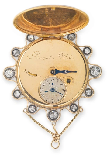Мария-Антуанетта сразу определилась со своим любимым часовым домом: в 1782 году Бреге изготовил для королевы первую модель — самозаводящиеся часы с боем и календарем — и после супруга Людовика XVI заказывала себе все новые и новые изделия. Мастерская Breguet находилась в то время на набережной Ке де л'Орлож и принимала заказы от монарших особ, приближенных двора и послов — королева сама активно рассказывала о чудо-мастере высокопоставленным лицам.