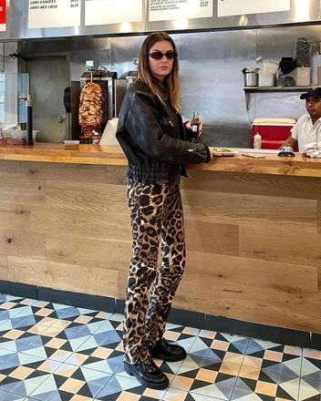 В гардеробе практически каждой француженки есть брюки с принтом. Чаще это модель прямого или широкого кроя в полоску или клетку. Более смелые модницы выбирают брюки с анималистичным рисунком. Такие помогут разнообразить гардероб и будут стильно смотреться с базовыми футболками, рубашками, водолазками и свитерами. Француженки сочетают такие с грубыми ботинками на шнуровке и лоферами, а также с ботильонами и классическими лодочками.