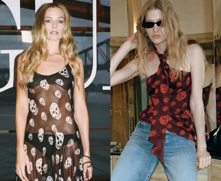 Во‑вторых, Марго встраивает принт в обновленный мейнстрим‑нарратив: если черепа появляются на красной дорожке у актрисы такого уровня, значит, тренд официально «разрешен» — и для масс‑маркетов, и для всех неравнодушных (читайте также: Чему нас научило модное сотрудничество Марго Робби и Эндрю Мукамала: стайлтрики, которые должна знать каждая).