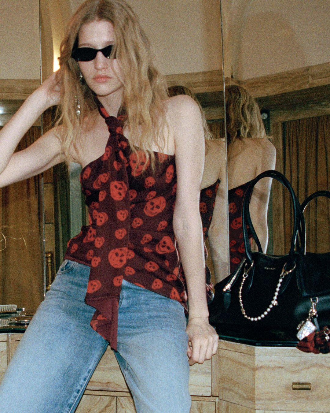 Возвращение принта McQueen идеально совпало с тем, что сейчас происходит к моде: интерес к dark romance, emo и goth‑эстетике, тренды trashcore и recessioncore, которые переосмысляют нулевые как слегка тревожный, «грязный» период. Череп в этом контексте перестает быть рокерским клише и становится символом честного разговора о хрупкости, тревоге и одновременно желании красиво жить «на грани».