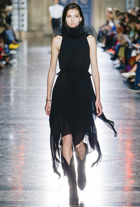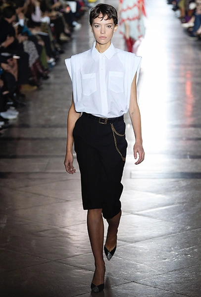 Какой будет первая коллекция нового креативного директора, заменившего ушедшего Рикардо Тиши? Этот вопрос долго не давал покоя всем, кто интересуется модой. Почетную должность заняла Клэр Уэйт Келлер, которая ради Givenchy покинула дом Chloe. Несколько месяцев подряд аналитики гадали: будет ли новый Givenchy ультра-женственным с обилием оборок с акцентом на невесомые ткани и «летящие» силуэты (все, за что мы ценим Chloe)? А может, Уэйт Келлер снова увлечется трикотажем, как делала прошлом, создавая коллекции для Pringle Of Scotland?