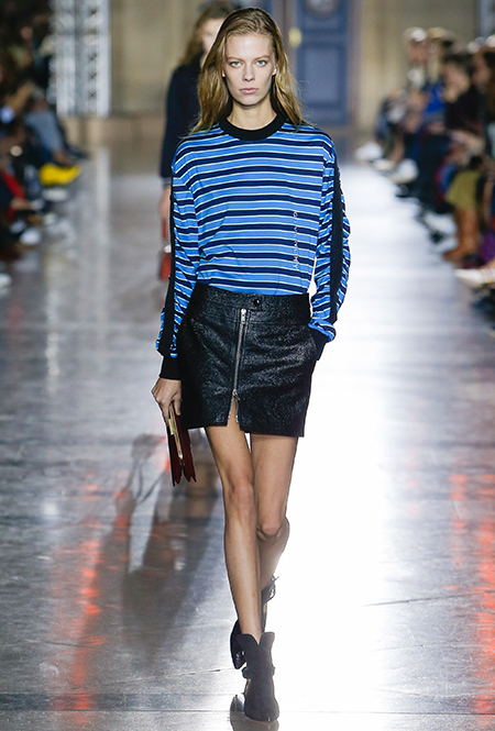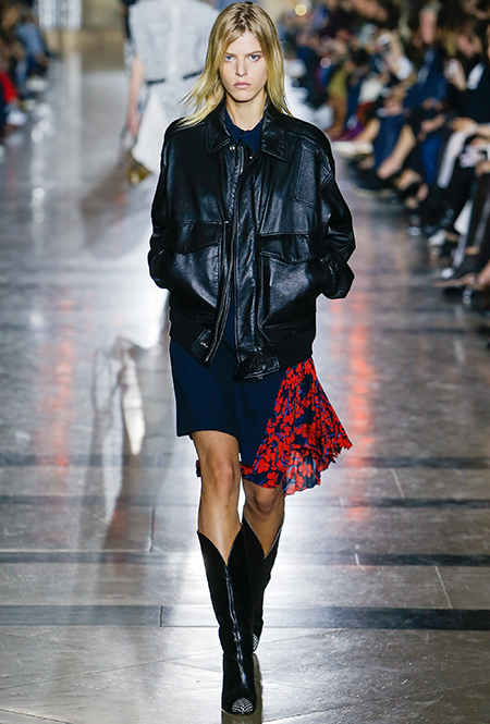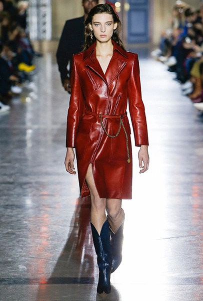 При этом мягкие и «подвижные» силуэты в коллекции совсем не главные. Основной упор Уэйт Келлер сделала на графичность и четкую линию плеч. Новый Givenchy – настоящее царство строгих мужских и женских пиджаков и пальто. Здесь есть и объемные кожаные куртки и яркие плащи – тоже из кожи и даже один двубортный тренч с крупными пуговицами и «погонами» - отголосок популярного грядущей весной стиля милитари.