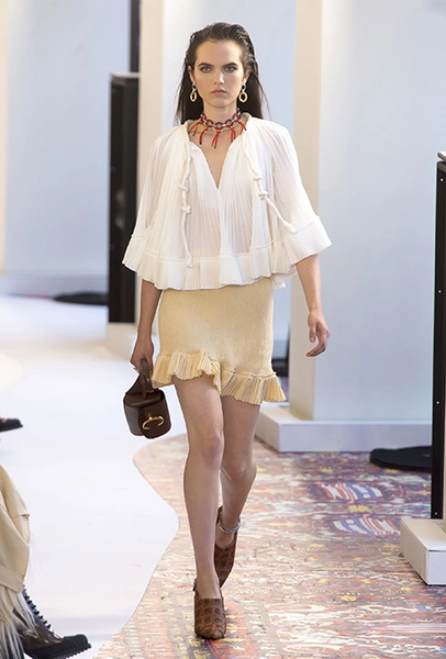 В этом году количество кадровых перестановок и дебютных шоу бьет все рекорды. Ведущего дизайнера сменили и в Chloé: на этот раз первую для бренда коллекцию показала новый креативный директор Наташа Рамсей-Леви, которая ранее сотрудничала с Balenciaga и Louis Vuitton. Перестановки во французском Доме всегда происходят без драм, шоу и скандалов: сказывается сама специфика бренда — курс не на эпатаж, а на создание удобной и комфортной одежды, которая становится фоном для ее обладательницы, подчеркивая природную красоту и естественность женщины, но ни в коем случае не заслоняя ее.