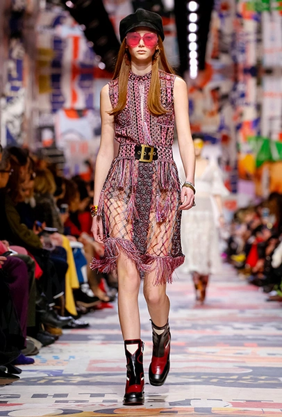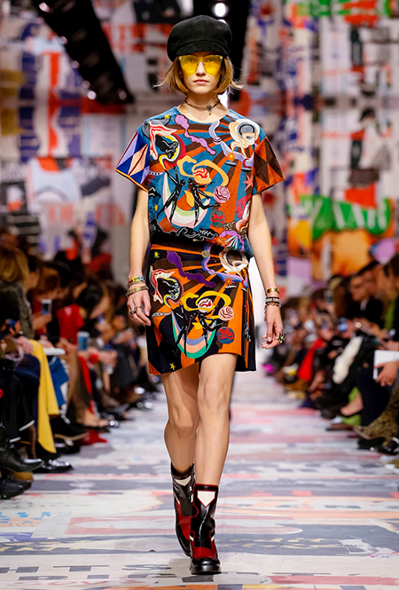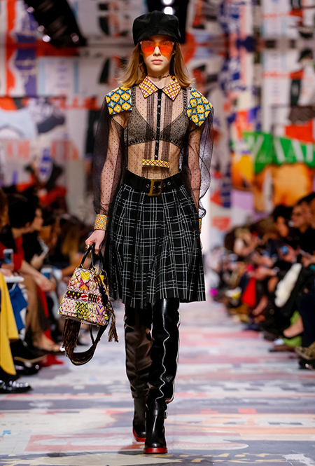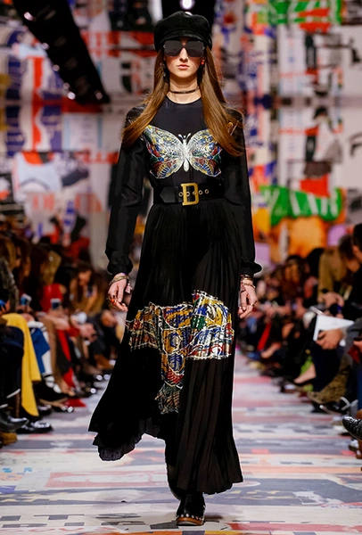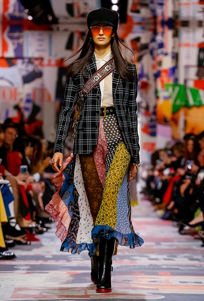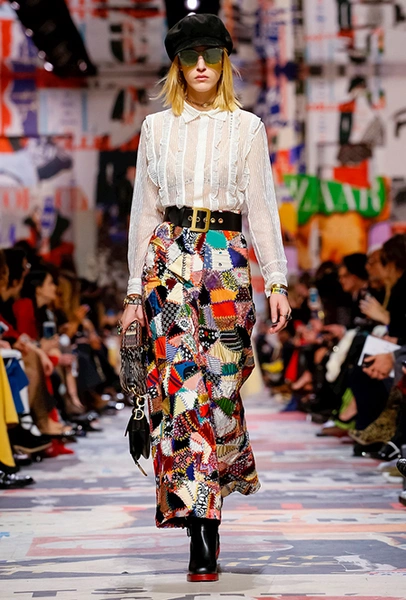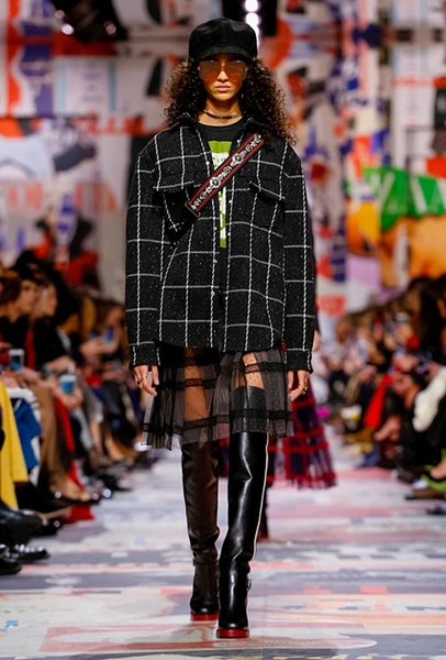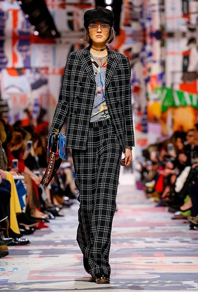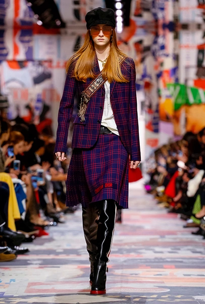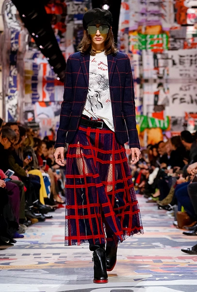 В те самые 60-е годы у руля Dior стоял Марк Боан – тоже своего рода дизайнер-революционер. Именно он запустил в 1967 г. первую в истории модного дома линейку pret-a-porter Miss Dior. Говорят, одной из причин тому стала стихийная демонстрация женщин у бутика Dior в 1966 г. Они стояли у дверей с плакатами Mini-skirts forever (этот плакат оказался в числе тех, что украшали музей Родена во время шоу). После этого Боан и создал Miss Dior – линию, где длина была короче, крой лаконичнее, а из принтов выделялась яркая крупная клетка. Ее-то Кьюри на этот раз и позаимствовала у Боана. Этот и несколько других знаковых трендов рубежа 1960-70 годов из новой коллекции – в нашей подборке.