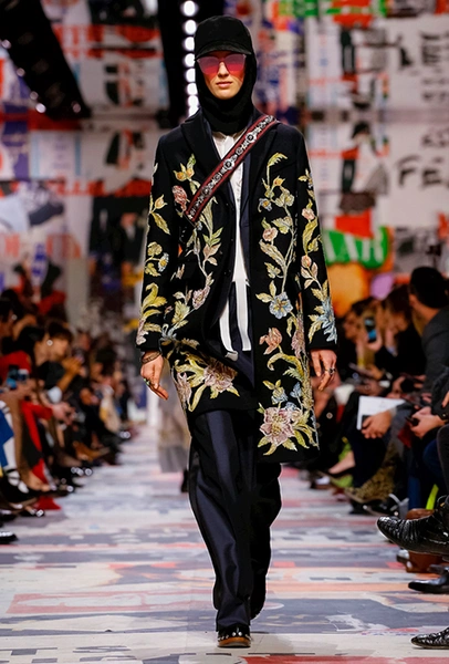 В протестах 1968 года беспрецедентную роль сыграли женщины – студентки, иммигрантки, рабочие. Разумеется, этот факт Мария Грация, как главный форпост феминистских идей в моде, обойти вниманием тоже не смогла. Стены зала в Музее Родена, где прошел показ, были обклеены старыми обложками модных журналов вперемешку с плакатами, на которых черной краской написали La voix de femme («Голос женщины»). Слоган I’m a woman украшал «задник» подиума, а на самом здании музея, рядом с надписью Dior появились: Un homme sur deux est une femme («Каждый второй человек – женщина»), Women’s rights – human rights, Women, freedom, beauty, magic. Всего в оформлении было использовано 3000 плакатов, а автором декораций стал знаменитый оформитель Александр де Бетак.