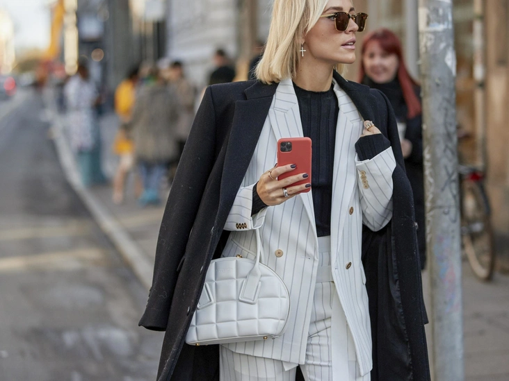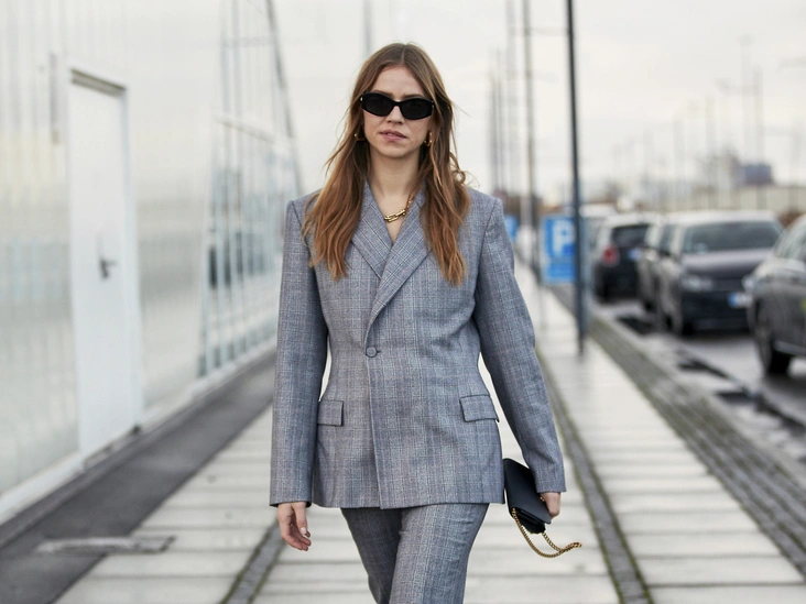 Двубортный жакет уже давно перестал быть главным маркером офисного стиля и с легкостью сочетается как с деловым гардеробом, так и с повседневными юбками, джинсами и кроссовками. Одним из самых универсальных принтов станет клетка, а также различные ее модификации — от тартана и виши до «гусиной лапки» и гленчека, которые на подиуме представлены в изобилии. В пару к жакету надеваем бланковую футболку в теплую погоду или трикотажную водолазку, когда на улице похолодает.