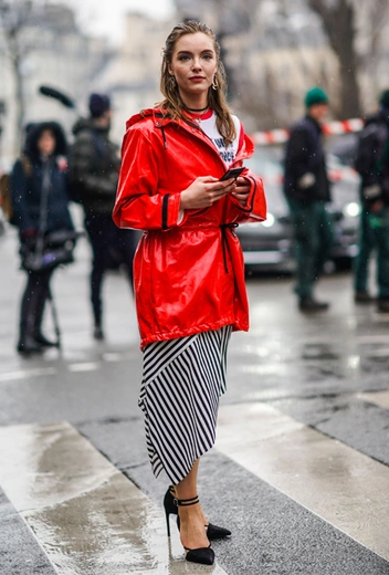 Непромокаемые куртки из полихлорвинила — скорее, яркий атрибут стиля спорт-шик, однако героини стритстайл-съемок носят такие даже с романтичными платьями. Самыми универсальными моделями станут прозрачные варианты — такие легко сочетать и с грубыми ботинками, и с полусапогами на каблуке, и с массивными кроссовками. Авангардные и футуристичные дождевики будут более придирчивы к образу, но взамен станут ярким, привлекающим внимание акцентом даже в самом минималистичном наряде.