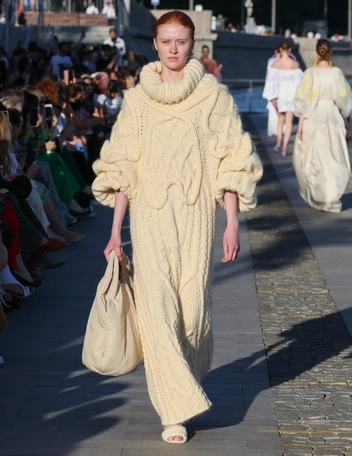 Осенне-зимний сезон невозможно представить без вязаных вещей, а в коллекции Алены Ахмадуллиной их оказалось действительно много. Каждое из творений — настоящее произведение искусства, а не базовый свитер или платье. Вязаные предметы гардероба стали настоящим хитом в этом году. Тренд останется актуальным и в новом сезоне, поэтому обязательно стоит пополнить гардероб объемным свитером крупной вязки и с высоким воротом, который так стильно смотрится в компании шорт свободного кроя.