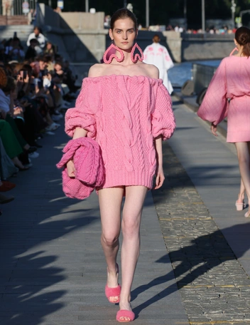 Вязаное платье — абсолютный мастхэв грядущей осени. Напоминать о теплом времени года будет конфетная палитра оттенков: нежно-розовый, бледно-розовый и другие тона. В коллекции Akhmadullina нашлось место как дерзким мини с открытыми плечами, так и эффектным моделям макси.