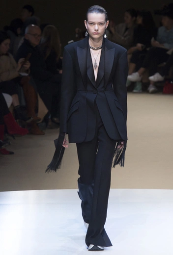 Почему бы не проводить год триумфа power suit, облачившись в брючный костюм, вариант с юбкой или смокинг? Он может быть и матовым черным, как у Alexander McQueen, и пестрым — как у Erdem.