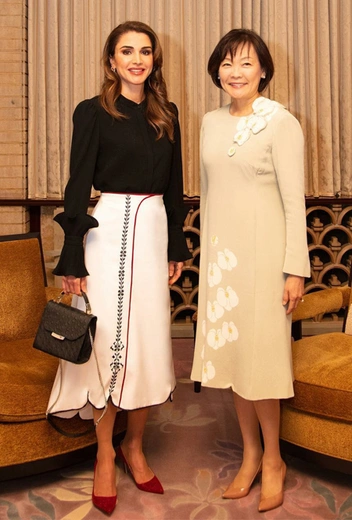 Прелесть этого сочетания заключается в том, что оно позволяет комбинировать разные фактуры, стили и цвета так, как подсказывает ваша фантазия. Мастерски это получается у нашей любимой иорданской королевы Рании.