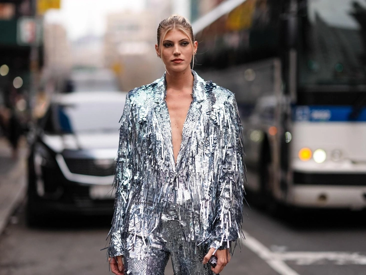 Другой праздничный вариант — костюм в пижамном стиле из бархата, который будет мерцать в свете гирлянд. Для такого наряда не нужны вычурные аксессуары: пары босоножек и простого клатча будет достаточно.