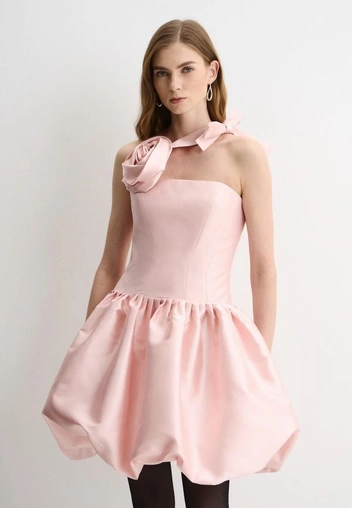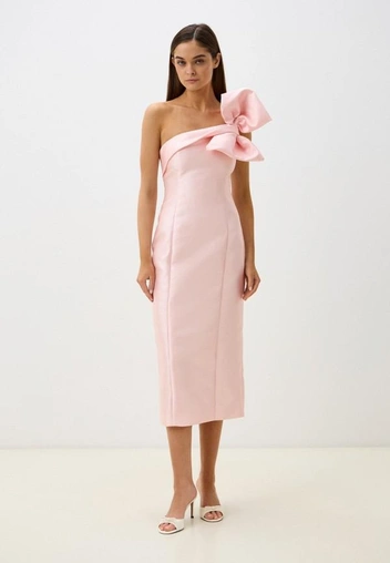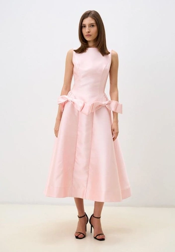 Несмотря на ироничное замечание, использовать этот образ для настоящего торжества вполне реально. Главное, немного снизить градус ретро и отдать предпочтение лишь паре акцентных деталей. Например, мы предлагаем взять на вооружение розовый оттенок. Он работает по тому же принципу, что и голубой — насыщенный и эффектный, но все же не претендующий на первенство там, где по-настоящему блистать должна лишь невеста. К нему уместно добавить и уже упомянутые банты, чтобы отдать дань романтичной эстетике и женственному стилю. Фасон же лучше выбирать минималистичный, чтобы случайно не перегрузить образ.