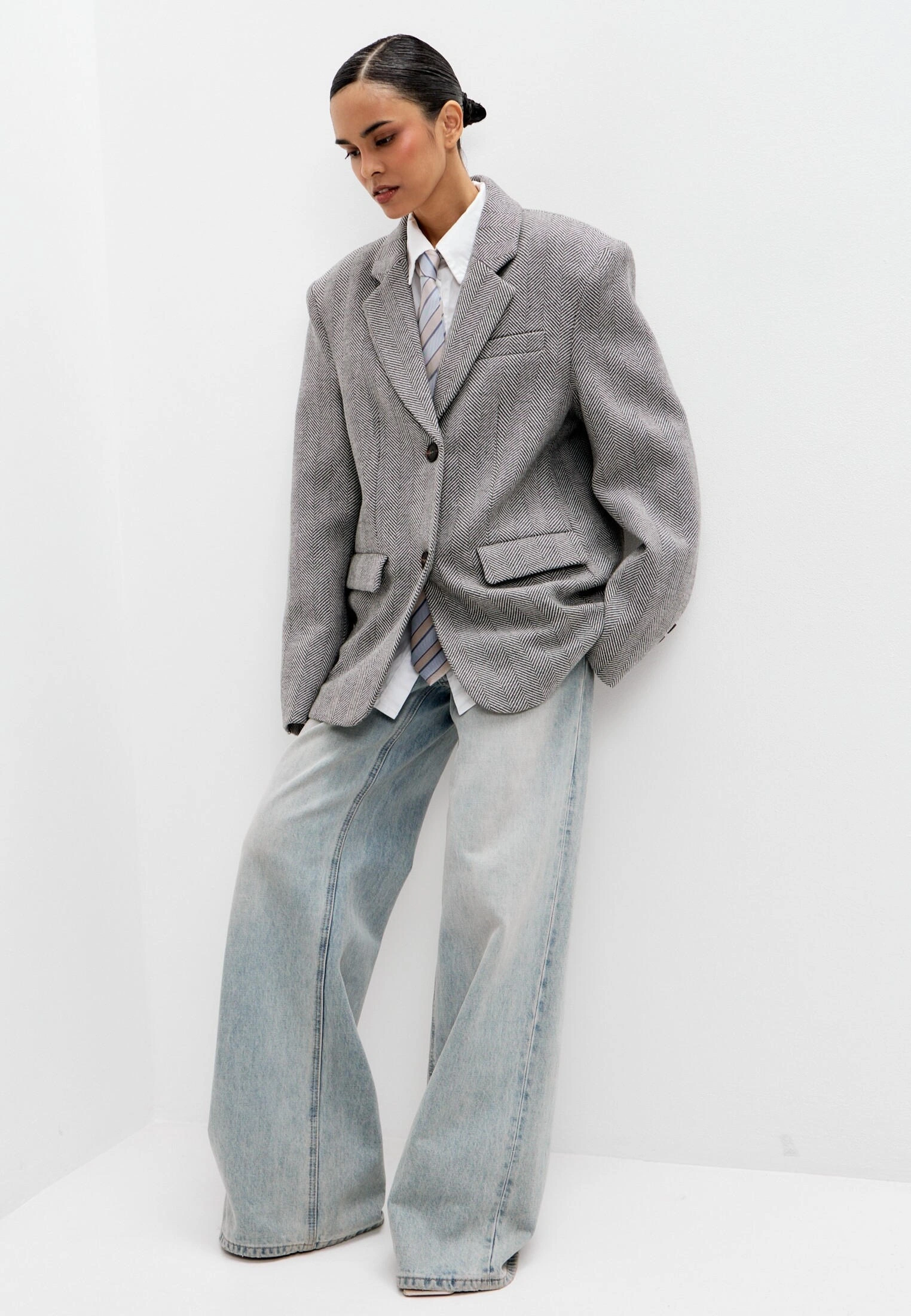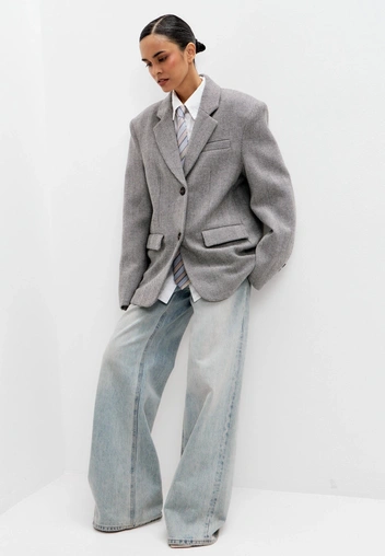 Что ж, из этого образа мы присматриваем себе сразу несколько фишек. Во-первых, обращаем внимание на оверсайз-костюм, на котором, чтобы подчеркнуть расслабленность аутфита, стоит подвернуть штанины. Также берем на заметку сочетание классики со спортивной обувью, которую для свадьбы можно заменить на более лаконичную модель. К примеру, полностью белого цвета. Под пиджак же, по подобию героини, надеваем кремовую рубашку, а чтобы сделать образ сложнее — не застегиваем ее полностью и добавляем к образу еще и белую майку.
