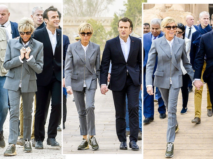 Брижит и Эммануэль Макрон на днях посетили храмовый комплекс Абу-Симбел на западном берегу Нила. Первая леди выбрала светло-серый брючный костюм в комплекте с кроссовками от Louis Vuitton – самого любимого французского бренда Бриджит – стоимостью около 700 евро. «Какого сфинкса она это надела?» – с иронией писал колумнист Daily Mail.