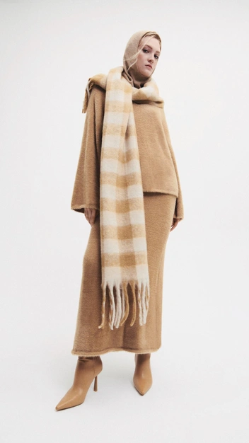 Одним из зимних трендов, который не оставит вас равнодушными, является сочетание юбки миди А-силуэта с высокими сапогами, заходящими под подол. Если выбрать изделия одного цвета, то у вас получится элегантный и гармоничный монохромный наряд.