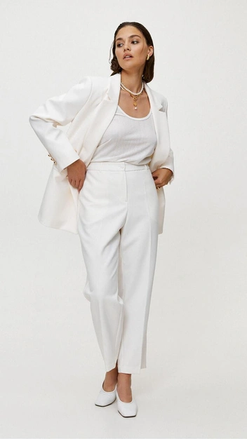 Если вам хочется визуально вытянуть талию, удлинить ноги и скорректировать область бедер, тогда присмотритесь к актуальным широким брюкам со стрелками на высокой посадке (читайте также: Правила шопинга для девушек plus size: от маленького черного платья до джинсов).