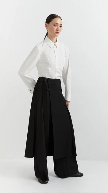 Юбки-трапеции являются универсальным выбором для любого типа фигуры. Кроме того, женщины ценят их в своем гардеробе за счет их универсальности: элемент можно вписать как в повседневные образы, так и в деловые или вечерние. В этом сезоне особенно актуальны юбки из шерсти, твида или кожи, которые придают образу дополнительные шарм и тепло.