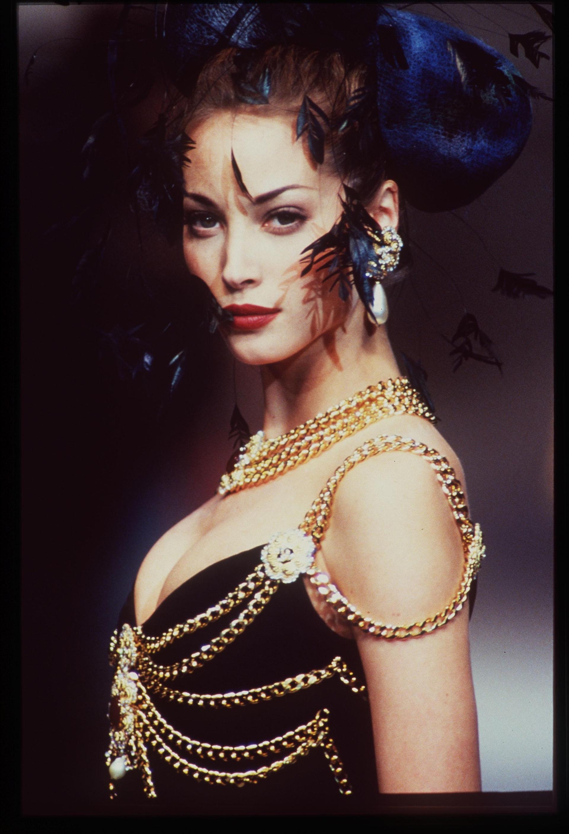 На показе весна‑лето 1992 года это платье впервые продемонстрировала Кристи Терлингтон — и с этого момента образ стал культовым. Оно выглядело как наряд и как манифест одновременно: классика, обвитая гламуром и истинная женственность по заветам Габриэль Шанель, подчеркнутая силой.