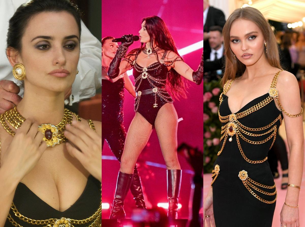 Спустя годы платье получило вторую жизнь, но уже не на подиуме, а в кино — на Пенелопе Крус в одной из ее самых запоминающихся ролей в картине «Разомкнутые объятия» Педро Альмодовара. На экране оно работает уже не просто как красивое вечернее платье, а как визуальная метафора: героиня буквально закована в золото, и эти цепи читаются как символ зависимости и несвободы. Так архив Chanel превращается из эффектного кутюра в культурный код, который уже более 15 лет охотно разбирают кинокритики и модные историки (читайте также: 6 фильмов Педро Альмодовара, в которых снялась Пенелопа Крус).