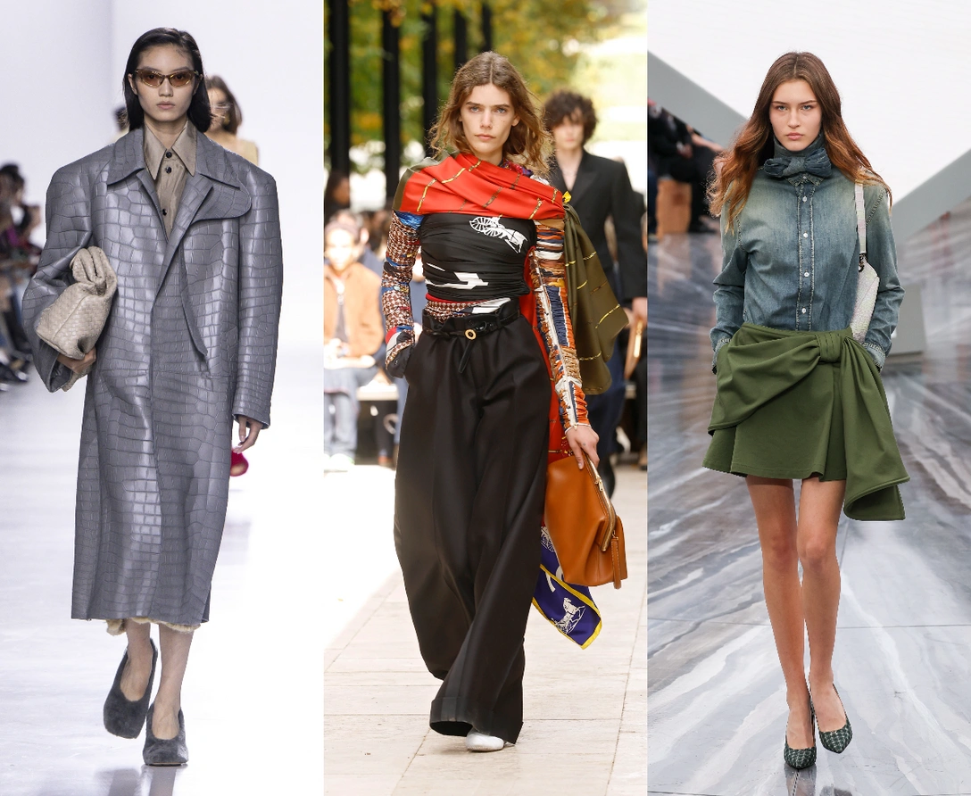Шарфы и платки тоже переживают второе рождение: в коллекциях Celine и Loewe шелковые аксессуары обрели новые функции — сегодня они превращаются в топы, юбки и драпированные накидки. Платок на шее — уже вариант для консерваторов, а для остальных — безграничное поле для экспериментов.