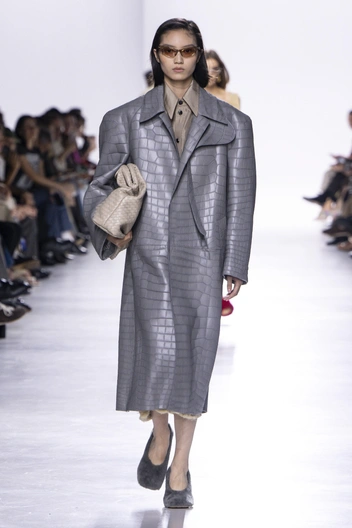 У Tom Ford — яблочно-зеленые и бордовые тренчи, которые задают настроение, без необходимости что-то «достраивать» снизу, у Celine и Bottega Veneta — расслабленные силуэты с намеком на загадочность: плащи, под которыми и вправду не видно, что именно надето. Стиль, построенный на недосказанности, оказался куда соблазнительнее прямых отсылок.
