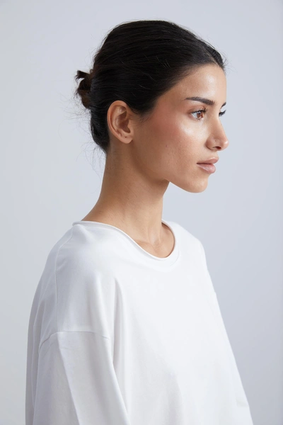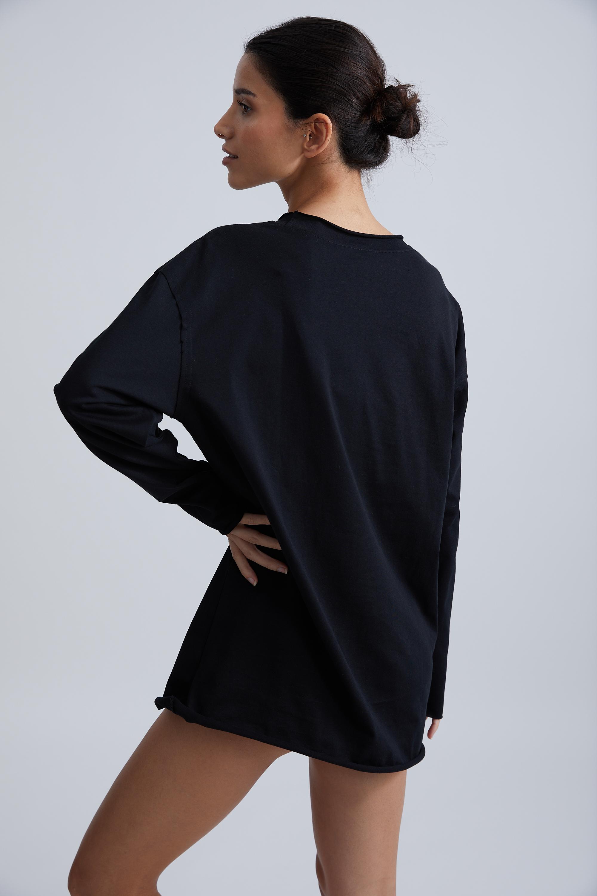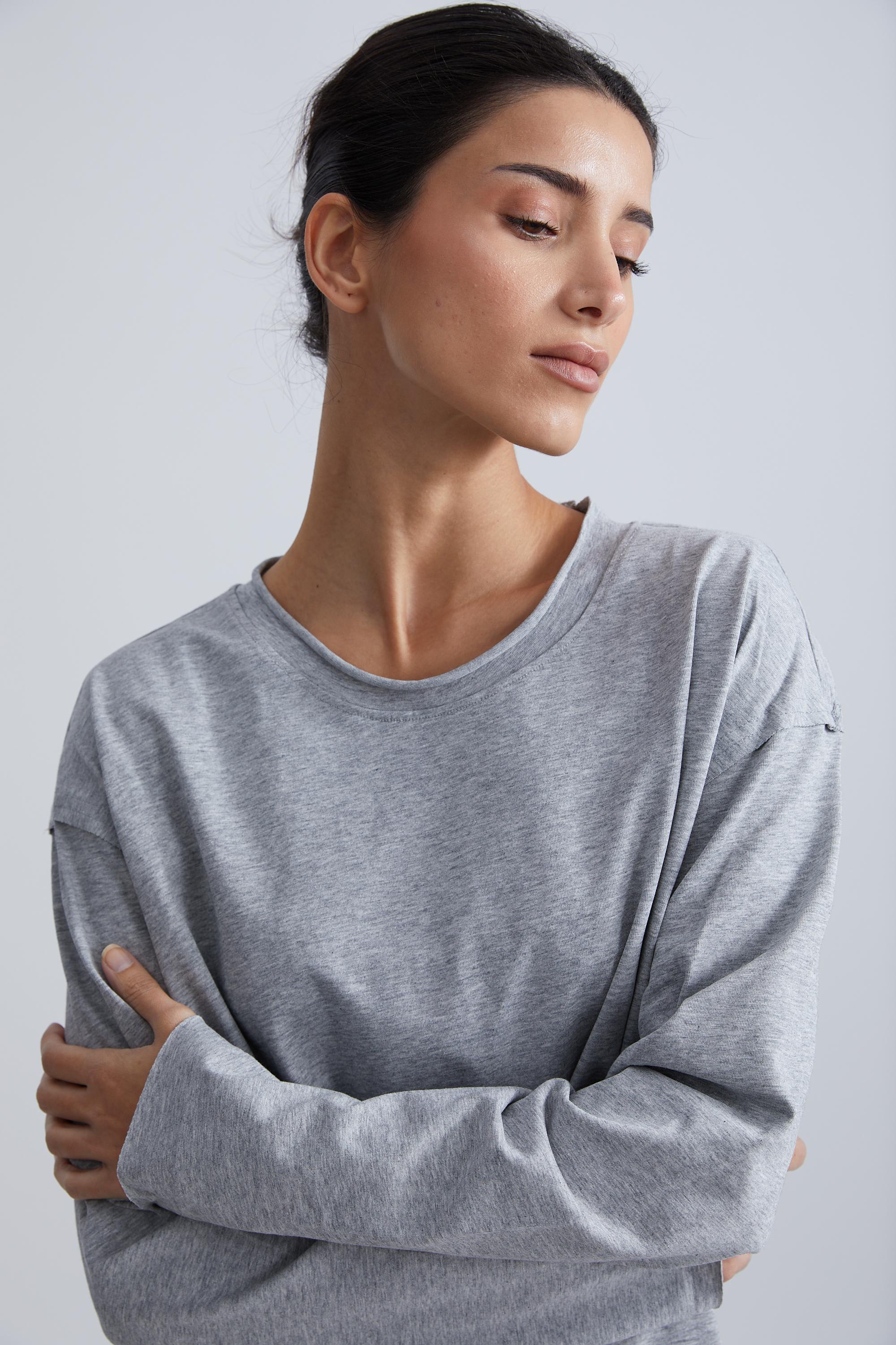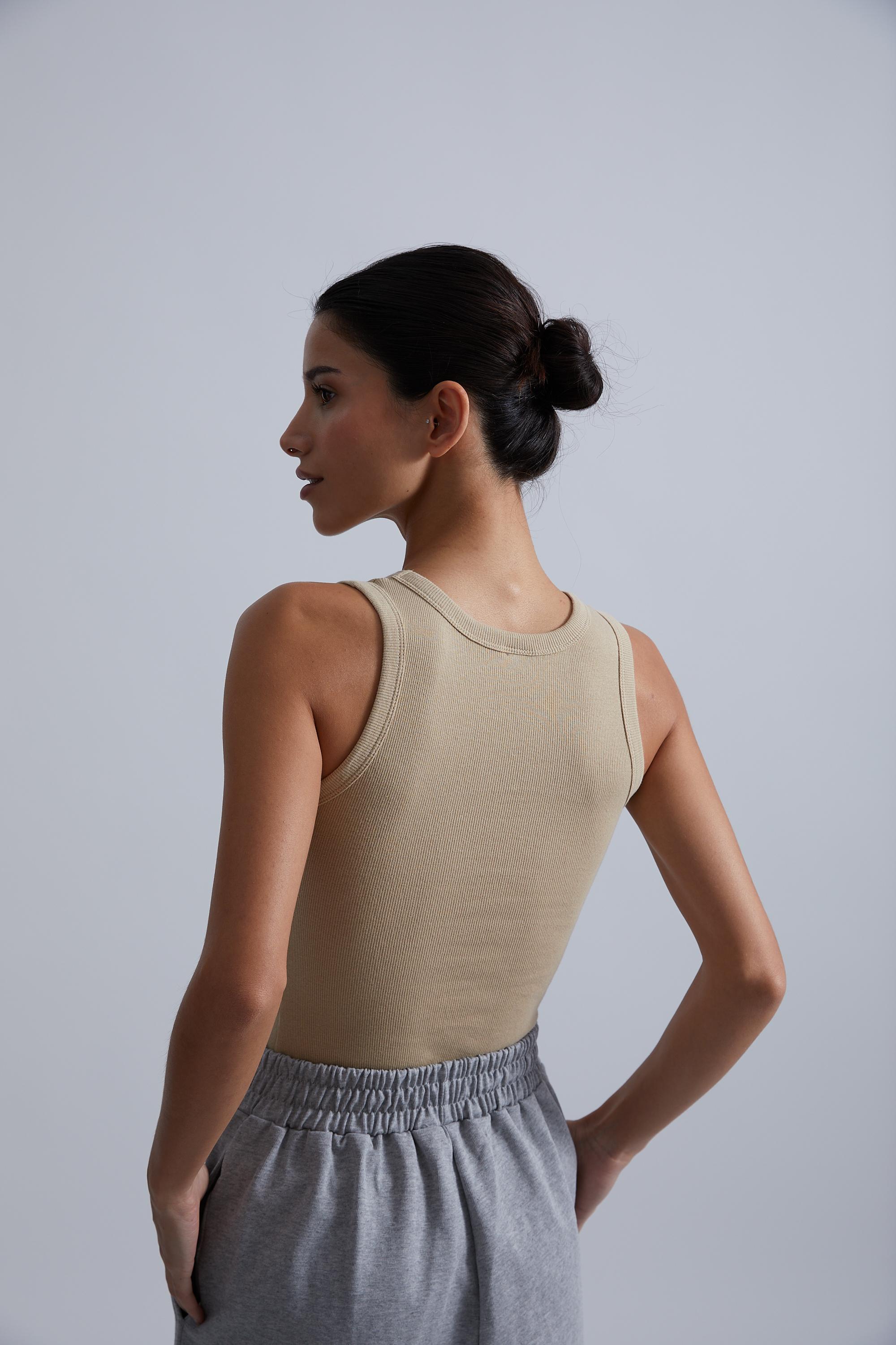 Майка в рубчик может быть как самостоятельным элементом гардероба, так и базой для вечернего образа, например, с кардиганом или жилетом. Топ выполнен из мягкого трикотажа, хорошо тянется и не сковывает движений. Еще одна новинка — oversize-футболка и лонгслив с необработанным краем.