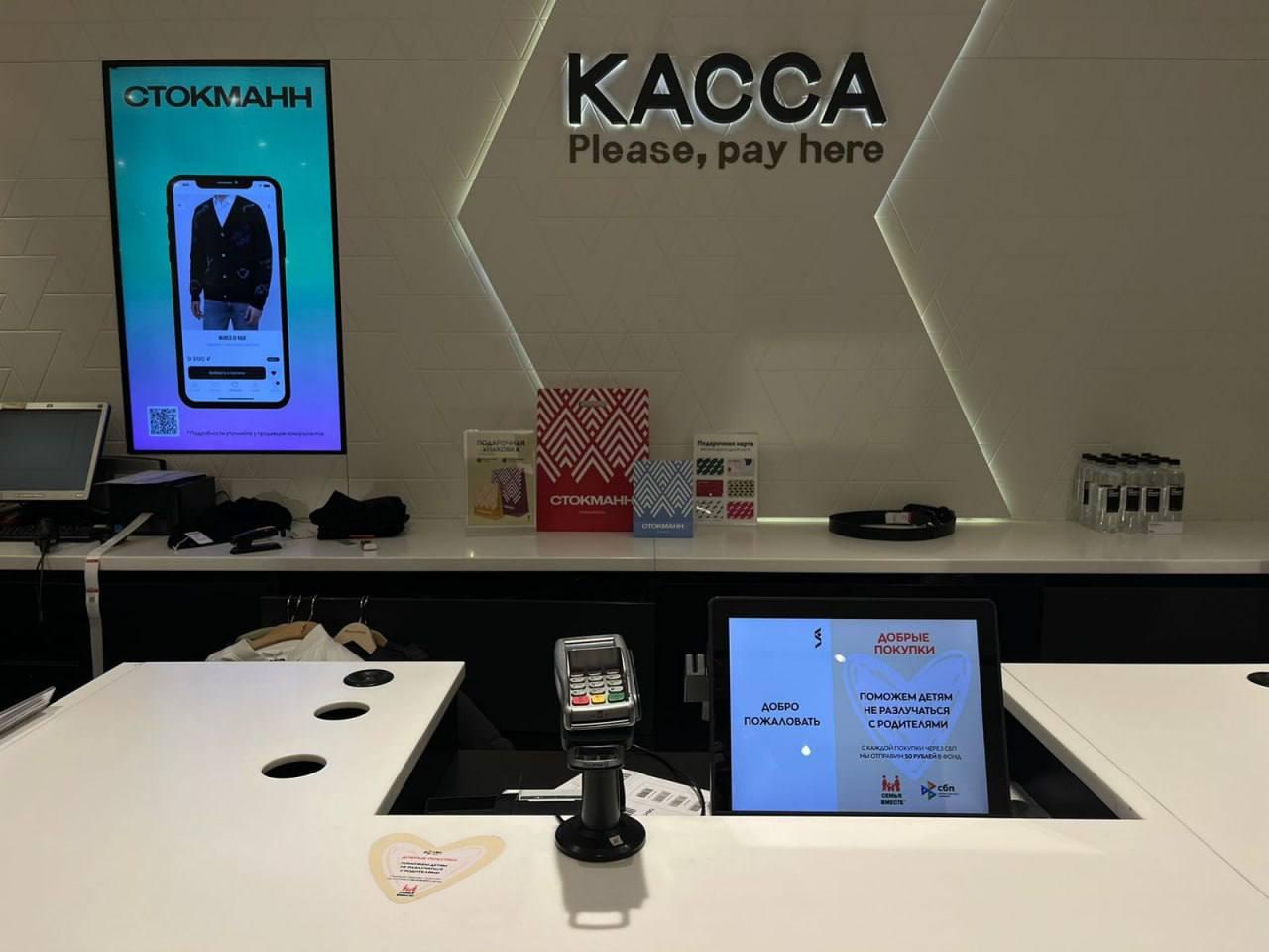 «СТОКМАНН» запустил благотворительный проект с фондом «Семья вместе» и СБП. По правилам проекта «Добрые покупки» 50 рублей с каждой оплаты через СБП в универмаге идут на поддержку инициатив фонда «Семья вместе». Приобретая нужное для себя и своих близких, покупатели помогают детям не разлучаться с родителями во время лечения. Проект был запущен летом 2023 года в пилотном режиме в ограниченном количестве универмагов. По итогам года было совершено более 24 тысяч транзакций по системе СПБ и перечислено 1 219 800 рублей в фонд.