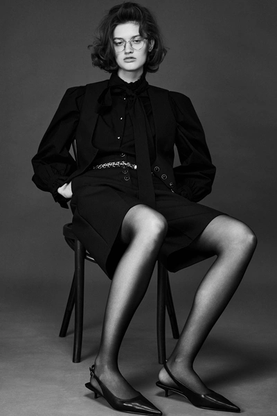 Модельные ряд довольно разнообразный: ботильоны на каблуке kitten heel, казаки актуальных форм, мюли, босоножки и балетки с тонкими ремешками и вечно актуальная классика. Среди аксессуаров можно найти мягкие шопперы, геометричные силуэты и сумки хобо, дополненные карабинами. Отражением природной концепции становится новое украшение в виде цветка — его можно носить как брошь или аксессуар для волос.
