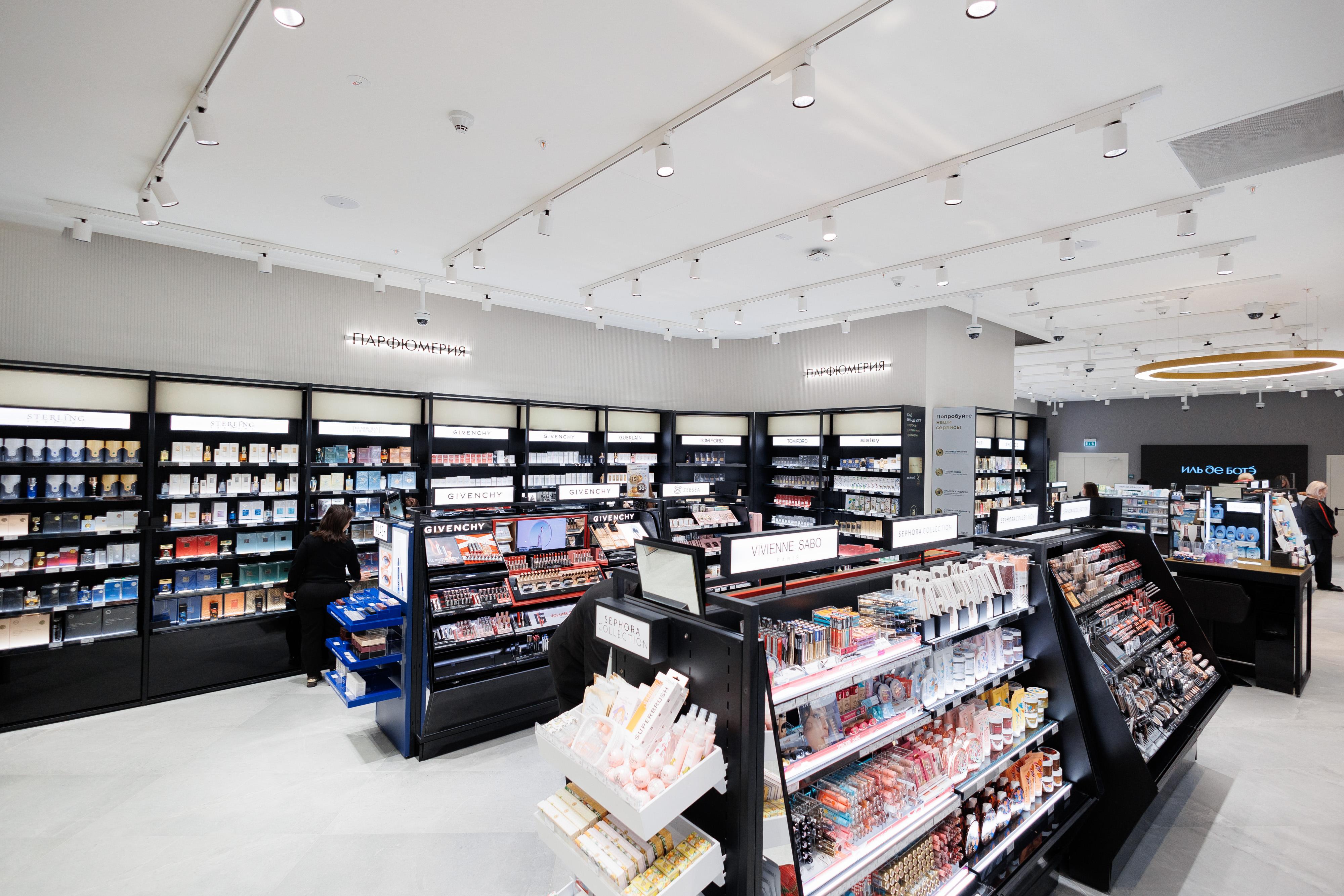 Магазин «ИЛЬ ДЕ БОТЭ» открылся в «Афимолле» после реконструкции. Архитектор обновленного бутика поделился, что основной задачей было создание места для комфортного бьюти-шопинга со спокойной и приятной обстановкой. В дизайне пространства использовали рельефную штукатурку и текстурированную плитку. Они дают помещению визуальную глубину, создавая контраст с глянцевыми поверхностями мебели и золотыми элементами.