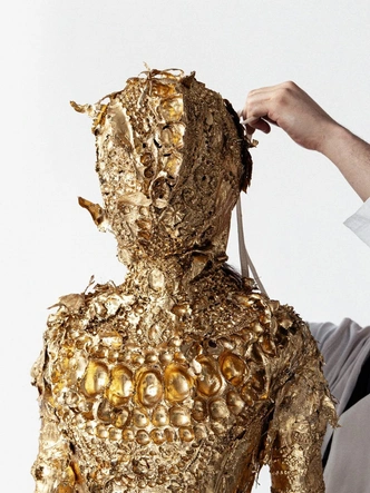 Artisanal: фарфоровые платья, восковые и металлические силуэты, вещи, собранные из расколотых элементов, — это демонстрация чистой виртуозности, фешн-перформанс.