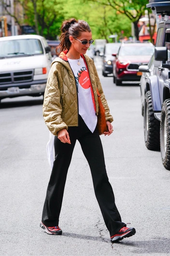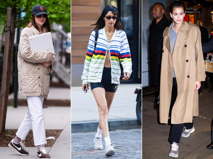 Примером для вдохновения могут стать выходы Беллы Хадид в Salomon или Дженнифер Лоуренс в Nike V2K Run. А, и не забываем про Дакоту Джонсон — после премьеры «Материалистки» все обратили внимание на ее гардероб, а там много моделей в стиле dadcore.