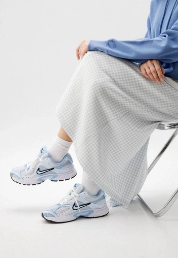 Shox Tl — еще одна «напружиненная» модель, предназначенная для бега. В белом цвете смотрятся базово и сочетаются со всем, в черном более готически — если хочется драматичного лука в стиле Амелии Грей. Другой вариант от Nike — упомянутые V2k. Эти перекрестные металлизированные линии, объемная подошва, классическая форма…мы сразу вспоминаем стиль в ромкомах 90-х. И завершаем Nike V5 RNR — более футуристичная, как будто пришедшая из будущего. Их выпустили совсем недавно — в 2025 году — как раз вдохновившись ходовыми ретро-моделями для бега. Так что, можно сказать, перед нами венец творения.