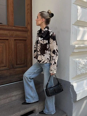 Безусловно, за два последних года леопард стал базой повседневных образов, но от того уже немного утомил. Кажется, пришло время посмотреть в сторону других анималистичных принтов. В этой категории для нас на первом месте коровий — эти небрежные пятна и сочетание темного со светлым намекают и на ковбой-кор, и на модный сейчас стиль бохо, который носят девушки от Хамовников до Пятой Авеню.