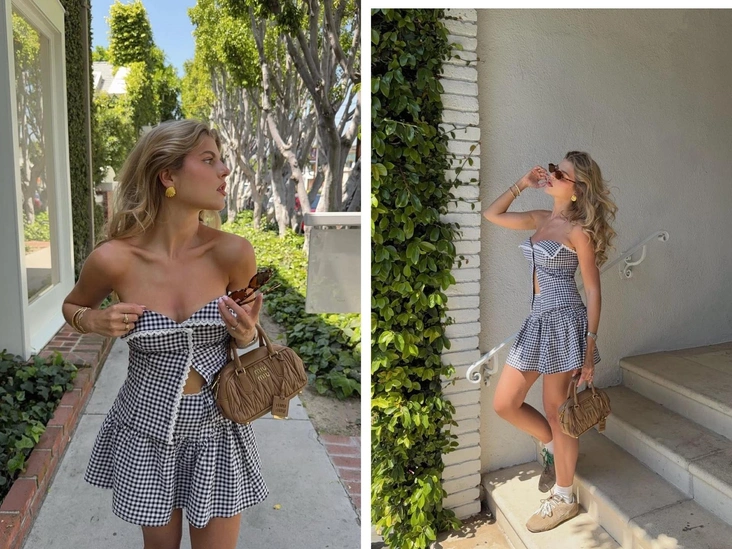 Хотя дизайнеры и показали неожиданно много клетки в сезоне SS/25, носить ее в классическом крупном исполнении — для многих более осенний вариант. На такой случай у нас есть клетка виши — вневременной принт, который закономерно становится популярным каждое лето.