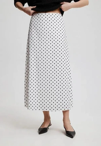 Тем не менее, Недели моды дают нам гораздо больше опций, чем стиль ретро. Полька-дот можно носить с пиджаками с широкой линией плеч в мужском стиле, которые только подчеркнут женственность принта, а также с черным цветом — на фоне монохромного образа полька-дот не теряется, а значит выглядит наиболее выигрышно.